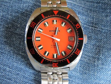 dial: orange, applied indexes & Eterna logo – great lume!